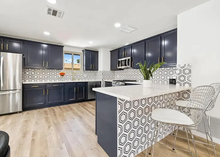 宿泊はパームスプリングス国際空港から5㎞圏内で、アグアカリエンテ文化博物館などの文化的名所から車で10分です。 別荘はパーム・スプリングス・ドッグ・パークから2.8kmの場所にあります。 宿泊施設から自動車で15分離れたパーム スプリングス エア ミュージアムも訪れることができます。